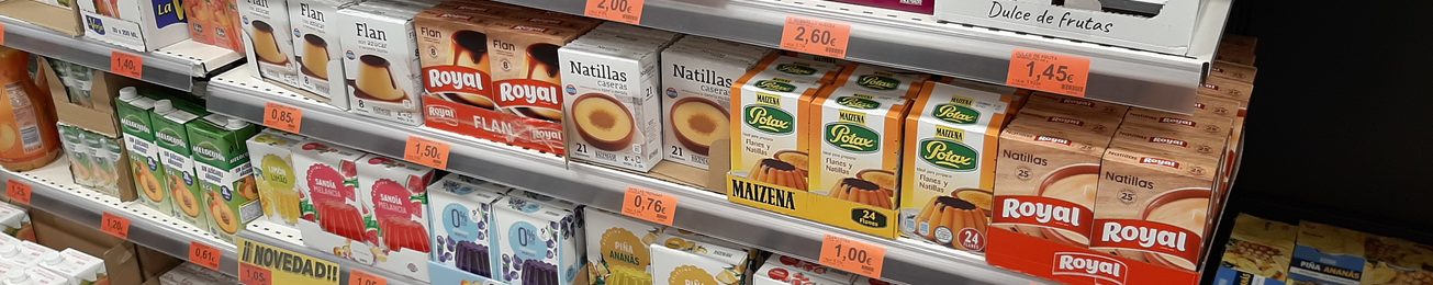 Imagen que ofrece el lineal actual de preparados y decoración para repostería en ocho grandes superficies comerciales de Barcelona, incluyendo presencia visual de cada categoría en el total de la muestra, así como de las distintas marcas comerciales del sector y de aquellas propias de las cadenas de distribución.