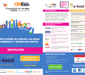 El próximo 24 de abril, en horario vespertino, tendrá lugar una jornada denominada "e-food" en el marco de la celebración paralela de la feria líder en marketing digital OMExpo y del evento especializado en comercio electrónico E-commerce España. El objetivo de "e-food" pasa por calibrar el nivel de maduración que presenta actualmente la venta de productos de alimentación vía internet y cuáles son las proyecciones a corto plazo. Para ello, la organización del evento (con la coordinación de la empresa del sector de elaborados cárnicos de Guijuelo, Julián Martín, a través de su director de marketing y e-commerce, Jorge González) ha reunido un elenco de ponentes que representan a todos los perfiles que, hoy por hoy, están jugando un papel de cierta relevancia en esta actividad.