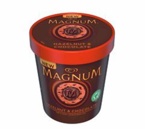 El grupo anglo-holandés Unilever acaba de reforzar su presencia en el segmento premium de helados en tarrina, dominado por 'Häagen-Dazs' (General Mills) y en el que hasta ahora estaba presente en los lineales de congelados a través de sus enseñas 'Ben & Jerry's' y 'Carte d'Or'. Para ello, ha apostado por una de sus marcas estrella, 'Magnum', presente en el mercado desde hace más de 20 años, hasta ahora centrada principalmente en el segmento de helados "con palo" para un target adulto. La nueva gama de 'Magnum' en tarrina consta inicialmente de tres sabores: 'Vainilla y Chocolate', 'Chocolate' y 'Avellana y Chocolate'. Los dos primeras referencias cuentan con "corazón" de salsa de chocolate, mientras que la salsa de la tercera es de avellanas al cacao. Además, los tres sabores cuentan con trocitos de crujiente chocolate. La nueva gama 'Magnum' se comercializará en supermercados y grandes superficies en tarrinas de 450 ml, a un precio recomendado de 4,99€ la unidad. Unilever ya intensificó su apuesta por esta categoría de producto el pasado año, ejercicio en el que lanzó 'Carte d'Or Signature' , gama de helados premium también en tarrina de 450 ml. En lo que respecta a 'Magnum', es la segunda novedad del grupo de cara a la campaña de 2013, tras la presentación hace unas semanas de la edición limitada '5 Kisses' .