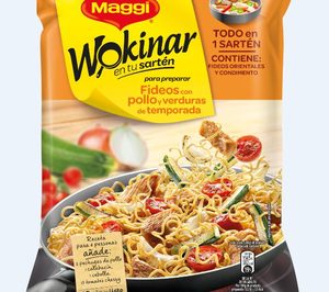 'Maggi' presenta 'Wokinar ', una nueva gama de ayudas culinarias para poder preparar en casa platos tipo wok de forma sencilla y rápida, en una sóla sartén. La nueva gama está compuesta por dos variedares : Fideos con pollo y verduras de temporada o Fideos con ternera y verduras a la provenzal.