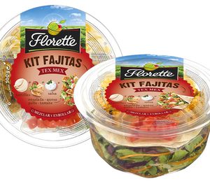 Florette ofrece una forma diferente de disfrutar sus ensaladas este verano con su nueva gama 'Kit Fajitas' , un producto que llega a los lineales de la distribución con la intención de quedarse. Se trata de un kit que ofrece todo lo necesario para preparar, en pocos pasos, una ensalada completa y terminar enrollándola en cuatro tortillas de trigo. Su primera referencia 'Tex Mex' incluye una base de ensalada fresca (escarola lisa, radicchio y zanahoria), pollo "tex mex", tomate, queso y salsa ranchera, para conseguir una fajita jugosa y ligera. Este producto, que se comercializa en envase de 300 gr, tiene un precio recomendado de 3,10 €.