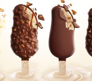 Los nuevos "stick" se comercializarán en el canal alimentación en multipacks de tres unidades, a un precio recomendado de 3,99 €, ligeramente superior a los 3-3,50 € en los que se suelen mover los multipack de tres unidades de 'Magnum' . Inicialmente, la gama desembarcará en Supermercados de El Corte Inglés, Hipercor y Carrefour . Además, la gama de palo de Häagen-Dazs se distribuirá también en sus heladerías y en gasolineras y tiendas de conveniencia, en estos casos en formatos individuales. Como reclamo, frente a la bandera del chocolate de Magnum, Häagen-Dazs incidirá en el "interior", con una comibación de texturas y sabores fruto de la cremosidad de su helado mezclado con los trocitos de frutos secos y las salsas. Igualmente, destacará la ausencia de conservantes y colorantes artificiales. La firma ya estuvo presente en bombones helados , si bien en formato individual y básicamente para sus heladerías y restauración. No obstante, hace un par de años abandonó este segmento en España. También como novedad, en este caso en su formato estrella de vaso de cartón, presenta de cara a este verano el nuevo sabor "Honey Walnut & Cream" (helado de crema, miel y nueces). Recordemos que, ahora a la inversa, 'Magnum' también está explorando este segmento de vaso de cartón, en el que entró para competir con Häagen-Dazs en 2013 . La enseña de General Mills copa prácticamente en solitario el segmento superpremium de helados en distribución alimentaria moderna, canal en el que ha conseguido crecer incluso en los años más complicados de la crisis económica. De hecho, el segmento de helados por encima de la primera marca, en este caso de Unilever ('Frigo'), está intentando ser tomado por nuevos operadores , conocedores de un vacío que únicamente parece cubrir Häagen-Dazs. Las apuestas más recientes, todavía tímidas, están siendo las de 'Giangrossi' y las de La Ibense Bornay, esta última tras el nuevo rumbo tomado por la empresa . En el otro lado, la MDD, que copa el 83% del mercado en volumen y el 68% en valor , principalmente de la mano de Grupo Alacant (interproveedor de Mercadona) y la ya mencionada ICFC.