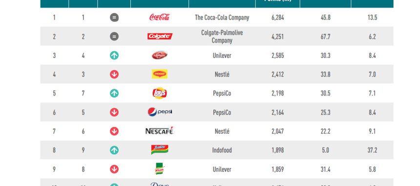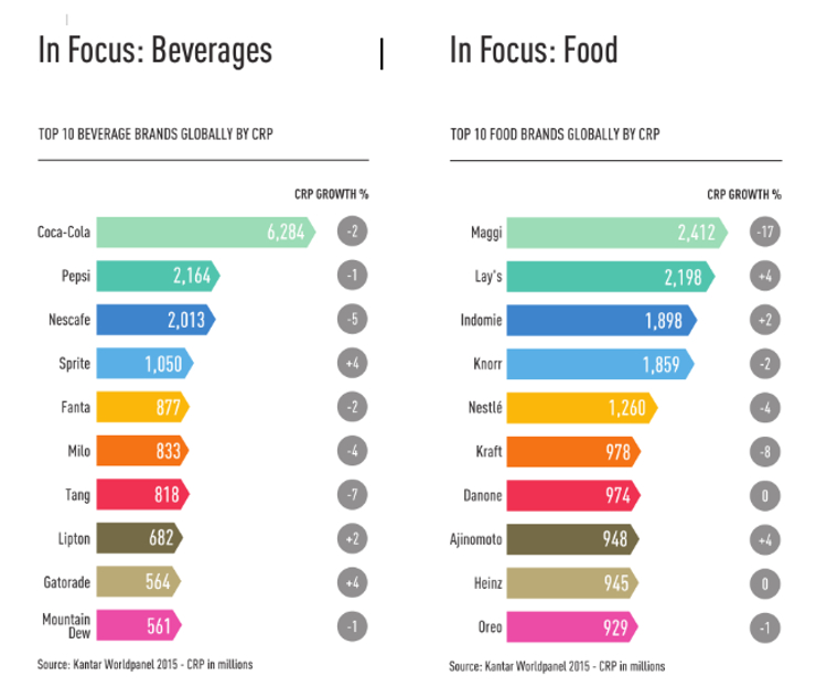 En alimentación, 'Maggi' aparece claramente penalizada por los problemas que afectaron a la marca en India. En el lado de los triunfadores, 'Lay's' vivió un buen año, con un crecimiento del 4%. Fuera de las diez primeras, Kantar destaca el comportamiento de dos marcas italianas que registraron importantes crecimientos a escala global: 'Barilla' y 'Nutella'.