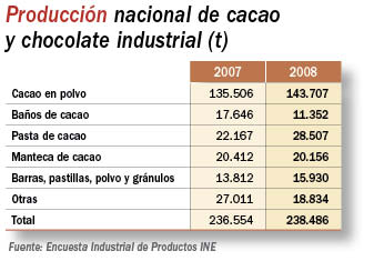 En cuanto al mercado nacional, nos encontramos con que el conjunto de productos que conforman el cacao y chocolate industrial movieron el pasado 2008 un total de 238.486 t. Esta cifra supone casi un 1% más que el año pasado. Sin lugar a dudas, la categoría que mayor volumen aporta es el cacao en polvo, con 143.707 t, que además ha aumentado un 6%. A este producto le siguen la pasta de cacao, con 28.507 t, así como la manteca de cacao (20.156 t).