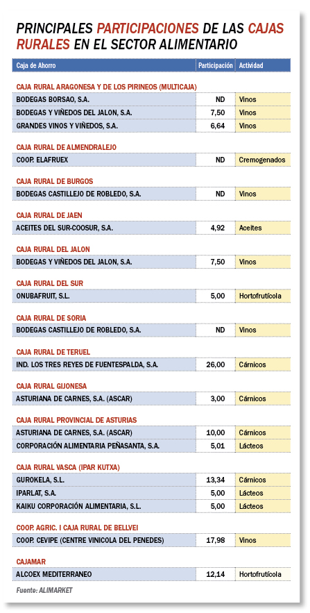 Las tres bodegas aragonesas están también participadas por Multicaja, una de las 75 cajas rurales existentes en España y que presentan un funcionamiento aparte de las Cajas de Ahorro Confederadas. El grueso de estas cajas rurales (72 de ellas) funciona bajo un modelo de banca federada, mediante su participación conjunta en el grupo Caja Rural (y en sociedades como el Banco Cooperativo Español). Un modelo que permite mantener la independencia societaria de cada entidad pero agrupándose para ofrecer servicios comunes, modelo que está siendo también estudiado por algunas cajas de ahorro, que prefieren mantener su independencia operativa, al menos para sus mercados locales.