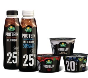 Arla Foods lanza su nueva línea de productos 'Arla Protein', un producto con alto contenido en proteínas, bajo en carbohidratos, bajo en grasa y sin edulcorantes artificiales, dirigido a un target que comprende a personas que quieren cuidar su línea y a aquellos deportistas que quieren recuperar su musculación después de practicar ejercicio. Actualmente, 'Arla Protein' está disponible en dos formatos: batidos de chocolate normal y con 50% menos de azúcar en 500 ml y en tarrinas 200 gr en 3 sabores y sin lactosa: natural, fresa y arándanos, que incluyen cuchara de plástico y tapa resellable para poder consumirlo en cualquier lugar y hora del día.