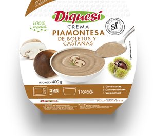 Vegetales Línea Verde y 'Diquesí' presenta una nueva crema fresca: 'Piamontesa de boletus y castañas' . Este nuevo lanzamiento completa la gama, que ya contaba con ocho referencias: Puré de verduras, Crema de calabaza y zanahoria, Crema de espárragos verdes, Vichyssoise de patata y puerro, Puré de patata, Crema de alcachofa, Crema de Garbanzos y Crema de Tomate con queso.