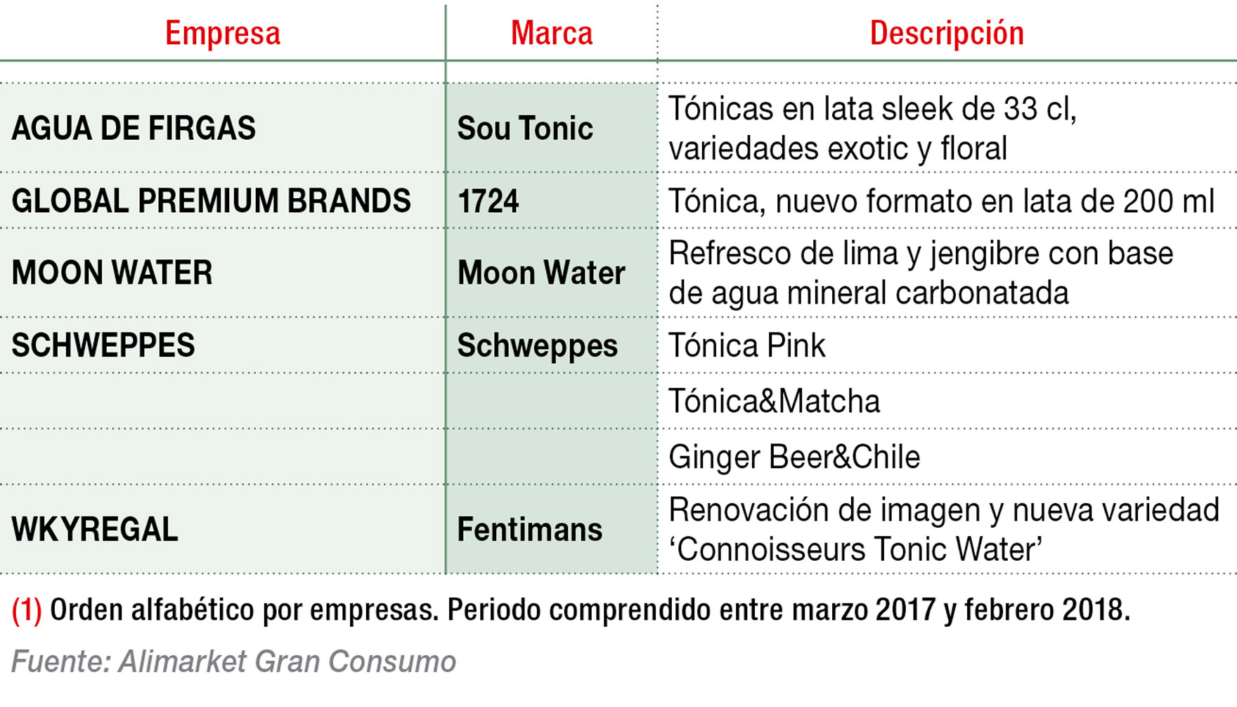 Principales lanzamientos en el sector de refrescos y mixers premium (1)