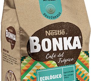 La multinacional suiza Nestlé sigue dando muestras de su trabajo encaminado a lograr la sostenibilidad de su actividad con el lanzamiento de una nueva versión de café molido ecológico para su enseña ‘Bonka’. Disponible en formato bolsa de 220 g, esta referencia se suma a la de Espresso Natural y Colombia 100% Arábica que ya tenía 'Bonka' en el mercado, todas ellas, encuadradas en el segmento de alta gama de la enseña. Entre las referencias de corte clásico, figuran las variedades Natural, Descafeinado, Mezcla y Extrafuerte. El catálogo ‘Bonka’ se completa con el café en grano Natural y Descafeinado.