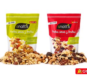 Por un lado, Grefusa presenta dos referencias con una combinación de frutos secos horneados y fruta deshidratada: ‘Snatt ́s Frutos Secos y Frutas’, con anacardos, nueces pecanas, cacahuetes, arándanos y cerezas; y otra variedad con almendras, nueces, cacahuetes, piña y papaya.