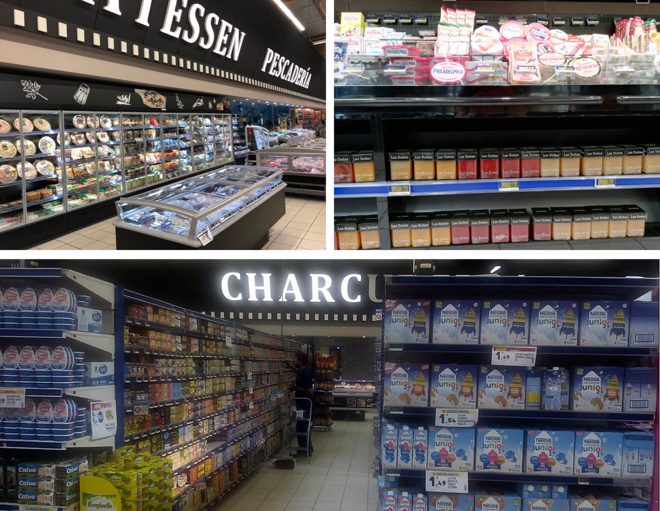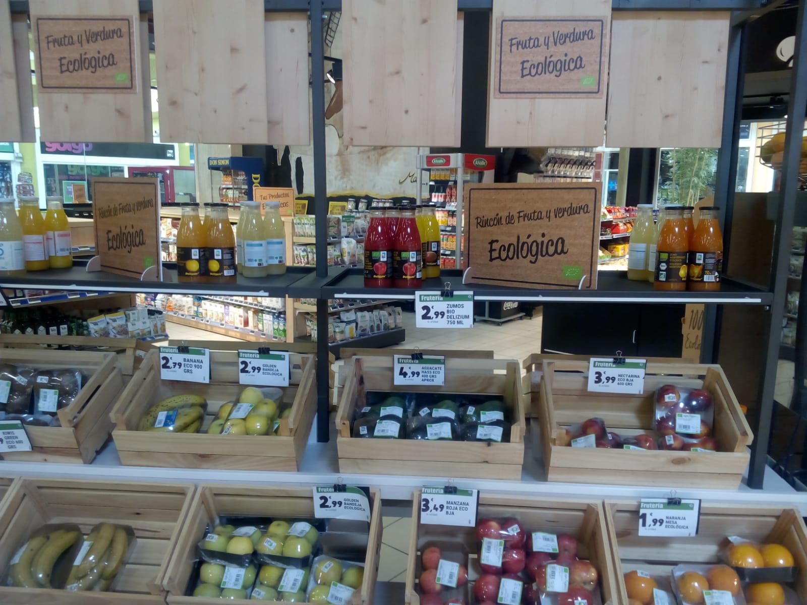 La zona de alimentación ecológica hace uso de estanterías bajas en negro y madera para diferenciarse del lineal estándar del resto de la tienda. Aún así, Valdemodis ha apostado por renovar el mobiliario de toda la sala de venta -próximamente se sustituirán los muebles restantes- con estanterías más cómodas y accesibles para el cliente. El color predominante es el negro, a juego con los indicativos de las secciones en los paramentos. Entre estas novedades destaca un expositor refrigerado fabricado por Carrier y diseñado por los responsables de Valdemodis que, a diferencia de lo que es habitual, tiene retranqueada la parte inferior para que pueda utilizarse como estanterías. Según explican en la empresa, otros establecimientos de 'E. Leclerc' están incorporando este equipo e incluso otras cadenas ya han mostrado su interés.