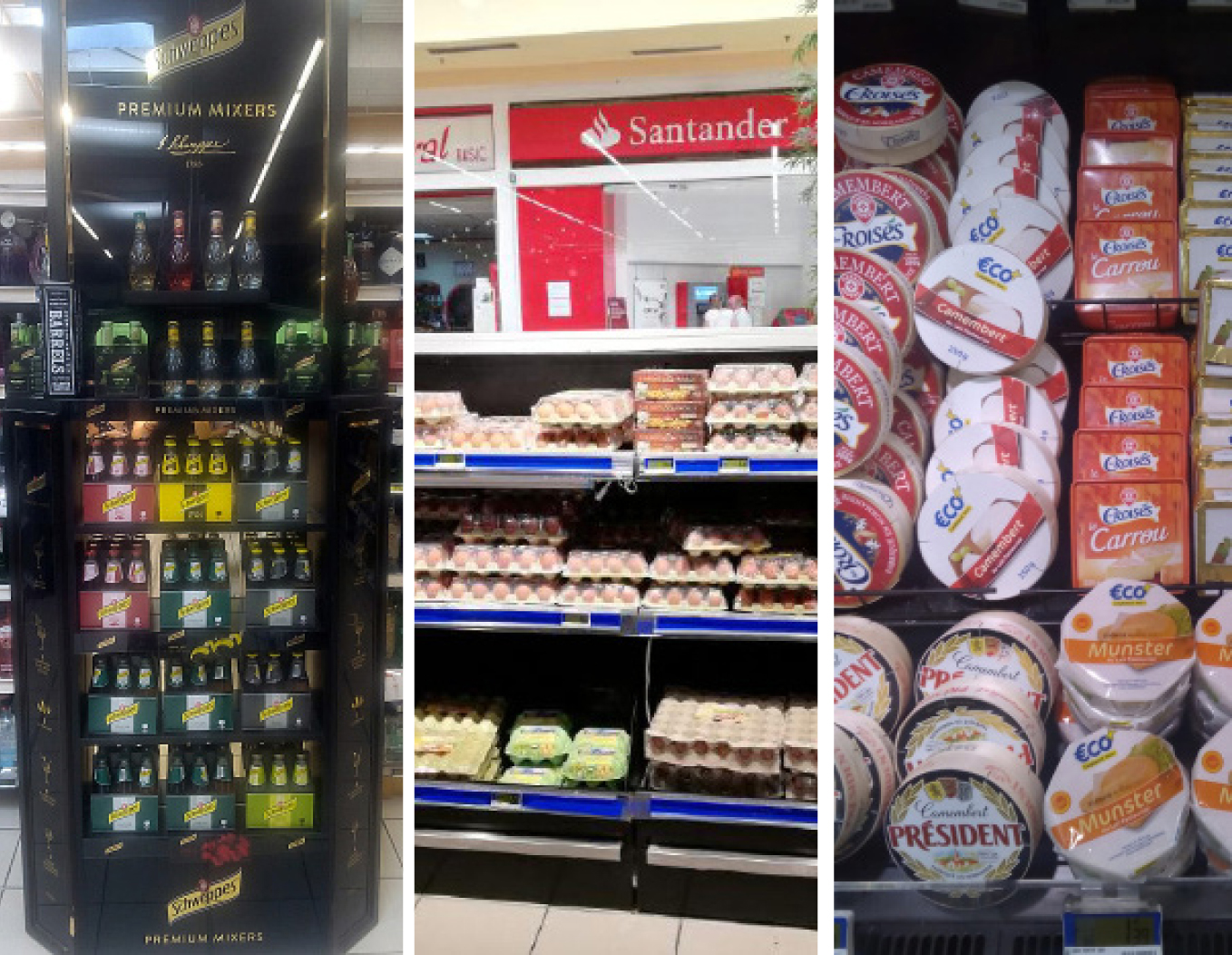 En total, el lineal de la tienda consta de cerca de 26.000 referencias, entre las que sobresalen dos apuestas principales: las primeras marcas y los frescos. La capacidad de elegir entre distintas gamas y precios es especialmente notoria en productos de primera necesidad, como leche, y otros como la bodega y las cervezas. Las marcas de fabricantes son realzadas con PLV distintivo en, por ejemplo, vitrinas refrigeradas o espacios 'muertos' como columnas arquitectónicas. En este caso, los proveedores firman contratos de dos años para aprovechar esta decoración. Las marcas blancas de E. Leclerc se reservan para ofrecer artículos y variedades que no están disponibles en España.