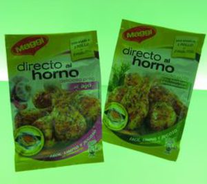 'Directo al Horno', gama que permite preparar un delicioso pollo sin añadirle grasa de una manera fácil, rápida y sin ensuciar nada. Sólo hay que comprar el pollo, meterlo en la bolsa, mezclarlo con el contenido de este sobre y hornearlo. La gama incluye dos recetas: al ajo y a las hierbas provenzales.