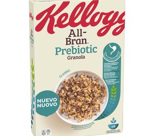 Kellogg lanza ‘All-Bran Prebiotic’, una nueva gama de granolas con bajo contenido de azúcares que incluyen en su fórmula fibra prebiótica. Esta nueva variedad destaca, según la empresa, por su contenido de fibra prebiótica natural de raíz de achicoria y salvado de trigo, que ayuda a mantener la salud digestiva y a cuidar la flora intestinal.