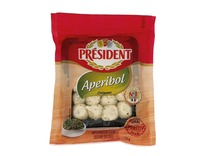Aperitivo de bolas de queso (7): las bolas de queso mozzarella con orégano President Aperibol se presentan como un aperitivo ideal (Brasil).
