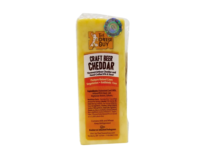 Cheddar con cerveza artesanal (9): el queso cheddar con cerveza artesana The Cheese Guy es un queso cheddar artesano estilo Vermont elaborado con cervezas artesanales tipo IPA y negra (EE.UU.).