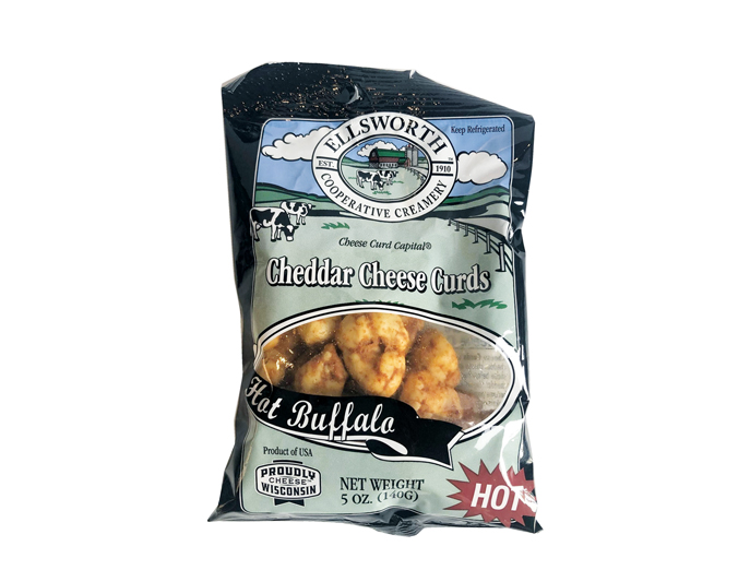 Cheddar Hot Buffalo (10): el queso cheddar en grano sabor Hot Buffalo de Ellsworth Cooperative Creamery es un queso cheddar fresco en grano, que se presenta en trozos cuajados de forma natural y se consume preferiblemente caliente (EE.UU.).
