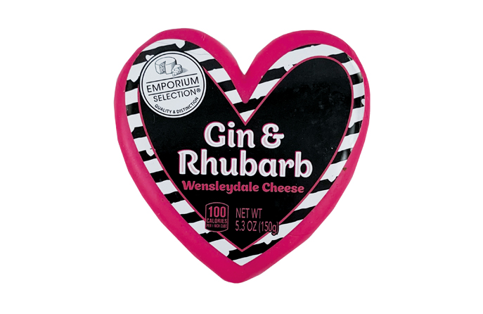 Queso de San Valentín con ginebra y ruibarbo (8): el queso Wensleydale con ginebra y ruibarbo Emporium Selection se presenta como un queso en forma de corazón lanzado especialmente para el día de San Valentín de 2020 y está elaborado con ruibarbo en conserva y ginebra (EE.UU.).
