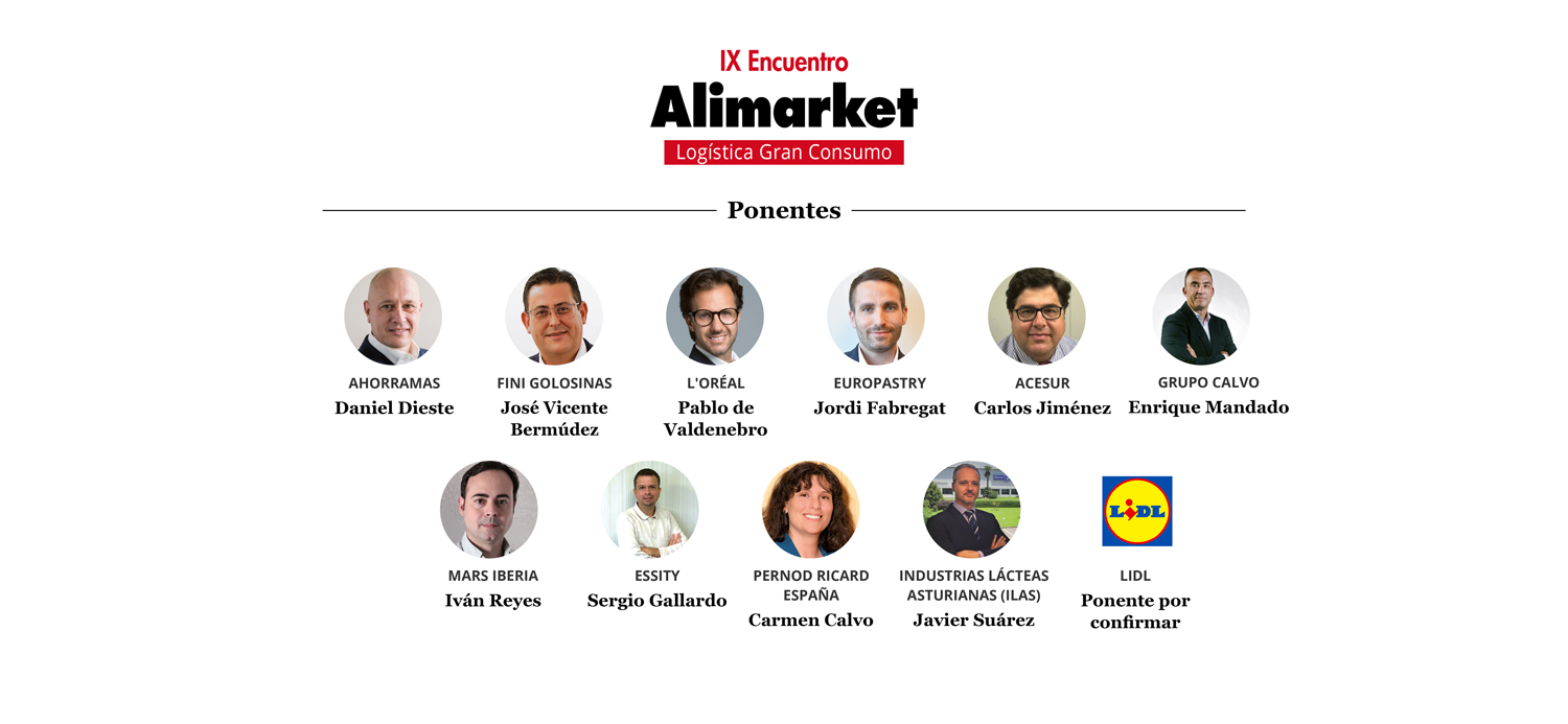 Para ello contaremos con la intervención confirmada de Daniel Dieste, Director de Operaciones de Ahorramas; José Vicente Bermúdez, CEO Spain and Export de Fini Golosinas; Pablo de Valdenebro, director de Operaciones Iberia de L'Oréal; Carlos Jiménez, Director de Logística de Acesur; Jordi Fabregat, Director de Operaciones de Europastry; Enrique Mandado, director de operaciones de Grupo Calvo; Iván Reyes, Supply Chain Director de Mars Iberia; Carmen Calvo, Head of Supply Chain de Pernod Ricard; Sergio Gallardo, Transport Operations Manager en Europa de Essity; y Javier Suárez, CEO Plantas de ILAS Reny Picot; así como un directivo logístico de Lidl, por determinar.