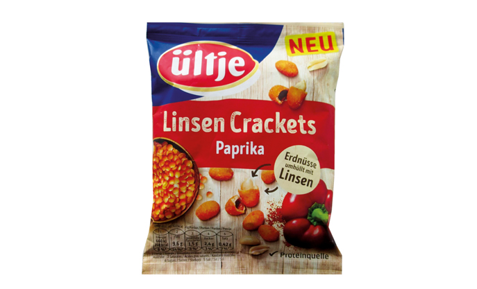 Las legumbres siguen siendo muy importantes para poder destacar en el envase alegaciones como “fuente de” o “alto contenido en” proteínas. Un mensaje que puede relacionarse con la salud digestiva, el aumento de la masa muscular y el control de peso. En Alemania, ültje Paprika Lentil Crackets (4) utiliza las lentejas como “fuente de proteínas”, mientras que Prozis Crispy B’s Fava Beans (5) es una fuente de proteínas con alto contenido en fibra.