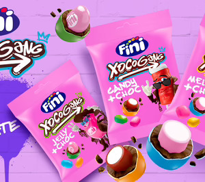 El grupo Fini, líder del mercado de caramelos y chicles en España, se adentra en una nueva categoría dentro del mundo de la confitería con el lanzamiento de 'XocoGang', golosinas bañadas en chocolate y grageadas de diferentes colores. La nueva propuesta se presenta en tres referencias: 'Fini Mellow + Choc', marshmallow recubierto de chocolate y cobertura de colores; 'Fini Jelly + Choc', beans con sabor fresa recubierta de chocolate y cobertura de colores; y por último 'Fini Candy + Choc', clásico rellenito de fresa recubierto de chocolate y cobertura de colores.