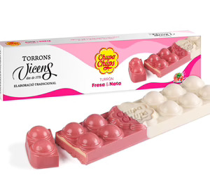 Aprovechando al celebración de la Feria Salón Gourmets que en estos días se está celebrando en Madrid, se acaba de presentar este producto que fusiona el turrón con este icónico caramelo y que ha sido fruto de un acuerdo de colaboración entre Torrons Vicens y Perfetti Van Melle. La nueva variedad contiene un praliné de almendra, nata y fresa con crujiente de Chupa Chups y está recubierto con chocolate blanco. Detrás de esta iniciativa se mantiene el interés por conseguir desestacionalizar el turrón para convertirlo en un postre utilizado los 365 días del año.