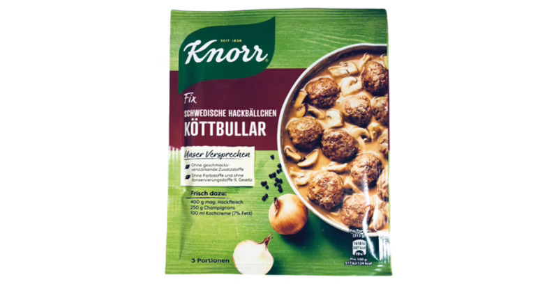 Por el momento, las empresas ya han empezado a crear productos sostenibles y a utilizar ingredientes respetuosos con el medio ambiente. En EE.UU., el condimento para preparar albóndigas suecas Knorr (1) está elaborado con cebollas cultivadas de forma sostenible, y el envase menciona el compromiso de Knorr con la sostenibilidad. No obstante, el mensaje se centra principalmente en el sabor del producto y su contenido proteico.