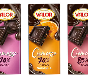 Chocolates Valor inicia la temporada con el lanzamiento de una nueva gama de tabletas, la línea 'Valor Cremosso', que aúna la cremosidad y el chocolate de altos porcentajes de cacao. Las nuevas tabletas "tienen una textura única y mucha más cremosidad. Cada onza se derrite en la boca y hace que se equilibre la intensidad del cacao con notas más suaves que se mantienen en el paladar. Es una receta única e innovadora, muy diferente en boca al resto de chocolates del mercado", se comunica,