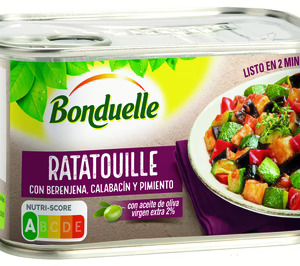 Bonduelle Ibérica, filial del grupo galo homónimo, ha presentado dos nuevas recetas de conservas vegetales: ‘Ratatouille con berenjena, calabacín y pimiento’, en la que, además de sus ingredientes principales, incluye cebolla, salsa de tomate y tomillo; y ‘Berenjenas a la mediterránea’, compuesta por dados de berenjena acompañados de salsa de tomate y albahaca. Las dos nuevas recetas, elaboradas con aceite de oliva virgen extra. se presentan en formato de lata, listas para calentar y degustar, y están calificadas como Nutriscore A. Se trata de una apuesta de guarnición "ideal para acompañar carnes, pescados, pasta o arroz".