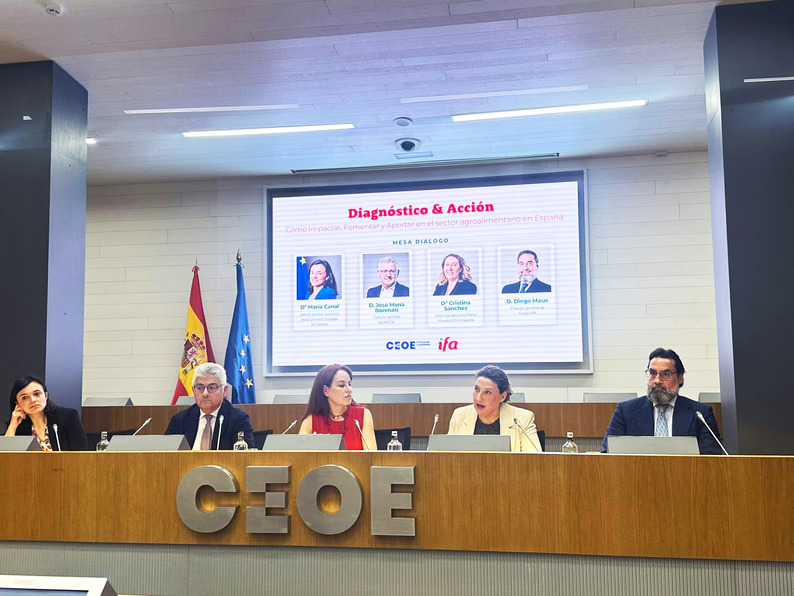 Grupo IFA ha presentado hoy en la sede de la CEOE en Madrid su Informe de Impacto económico, social y medioambiental correspondiente al año 2023, elaborado por KPMG. En él se pone de manifiesto que la contribución de la central de compras al PIB nacional asciende a 12.331 M€. El acto ha contado con la participación de Antonio Garamendi, presidente de CEOE y José Miguel Herrero Velasco, director general de Alimentación del Ministerio de Agricultura, Pesca y Alimentación, entre otros ponentes.