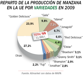Tradicionalmente en Europa se viene produciendo y consumiendo la manzana Golden Deliciuos o similares. Sin embargo, en los últimos años la aparición de nuevas variedades, clones y sistemas de producción han acentuado y obligado a una especialización productiva con mayor profesionalidad, inversión y riesgo. Además, los gustos del consumidor español están evolucionando poco a poco y junto a la oferta tradicional, las nuevas variedades buscan conquistar una porción del negocio. Tanto en España como en el exterior, se está dedicando gran atención a la innovación y al estudio de nuevas variedades que dinamicen el mercado. Entre las manzanas presentadas en los últimos años se encuentra la ya mencionada ‘Ambrosía’. En Europa, es la compañía Rivoira la entidad que dispone de los derechos exclusivos para su cultivo y venta en el continente. Se trata de una manzana bicolor, de calibre grande, gran dulzor, escasa acidez, textura crujiente y aromática. Otra variedad de reciente introducción es la ‘Kanzi’, una manzana roja, fruto del cruce entre las Braeburn y Gala. Ésta se comercializa en Europa por Greenstar Kanzi Europe (GKE), aunque es a través de socios nacionales, como por ejemplo el Consorcio de VOG (Italia), cómo realiza su venta .