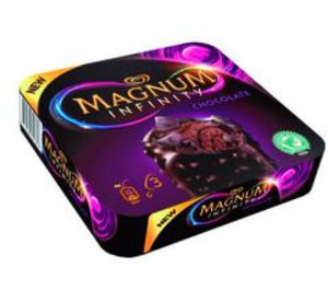 Unilever acaba de presentar su novedad dentro de la gama de helados 'Magnum' para la presente temporada: 'Infinity'. Se trata de un helado cubierto de una gruesa y crujiente cobertura de chocolate negro con un 60% de cacao y trozos de haba de cacao. Asimismo, 'Magnum Infinity' es el primer helado elaborado con una variedad de cacao muy poco común que crece en Tanzania. Mientras, su interior, también de chocolate negro, tiene cremosos remolinos de salsa de chocolate.