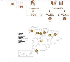 Según Spain Though its Wineries, España es el sexto destino mundial en enoturismo, con 16,4 M de turistas al año consumidores habituales de vino, procedentes de Alemania, Reino Unido, Suiza, EEUU, Holanda y Bélgica. Un 21% de este grupo compra o consume vino. El mercado potencial para turistas que puedan tener interés en visitar bodegas se sitúa en torno al 40% del total de turistas.