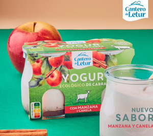 El nuevo lanzamiento de Cantero de Letur combina su yogur de cabra 100% ecológico con manzanas de producción ecológica y un toque de canela. La compañía manchega presenta este producto en los característicos tarros de vidrio de la marca.