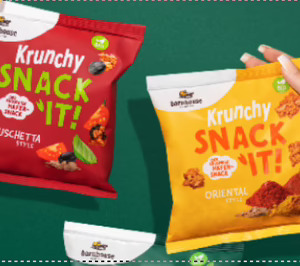 Con Snack it!, Barnhouse presenta de su primera gama de aperitivos salados a base de avena ecológica horneada. De textura crujiente, con un toque picante y con ingredientes ecológicos, el nuevo aperitivo de muesli salado de Barnhouse está disponible en tres variedades: Bruschetta, al estilo italiano con tomate y aceitunas; Oriental, con un intenso sabor especiado; y Sour Cream & Onion con un toque crema fresca y cebolla.