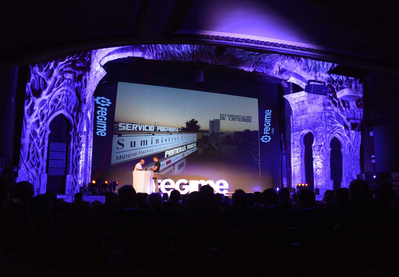 Posteriormente, preguntas especialmente seleccionadas fueron realizadas a varios de los invitados, quienes desde el escenario principal ofrecieron su punto de vista sobre temas de relevancia e importancia para el grupo. Por último, Jhon Powell, Presidente de Fegime Gmbh, aportó una visión internacional de los retos de los grupos de distribución independientes y los movimientos de fuerzas económicas recientemente observadas en el mercado multinacional. Seguidamente y aprovechando la visita a uno de los teatros con más historia de España, todos los invitados disfrutaron de una corta pero divertida representación sobre una situación real en el día a día del mostrador de un almacén de material eléctrico.