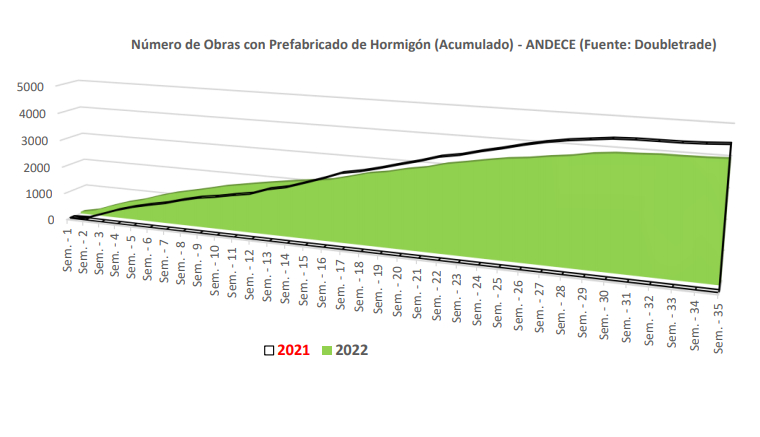 El número de obras realizadas con prefabricados de hormigón se redujo un 13% entre enero y agosto, según los últimos datos de Andece, la Asociación Nacional de la Industria del Prefabricado de Hormigón. Estos datos, que llegan hasta la semana 35 del año en curso, confirman la caída de actividad en este año que viene anticipando la entidad. En este sentido, la patronal del sector de prefabricado de hormigón en España mantiene su preocupación por una actividad descendente y unos costes ascendentes, más aún con la nota de prensa emitida por Cembureau, indicando que el precio eléctrico podría hasta triplicar el coste del cemento.