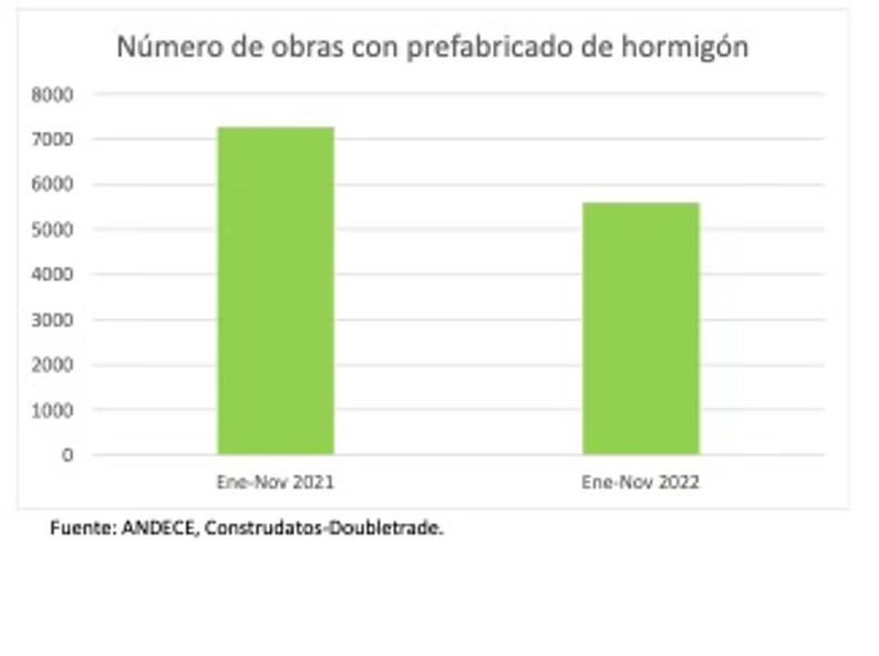 El número de obras con prefabricado de hormigón ha disminuido un 23% de enero a noviembre de 2022, según los últimos datos de Andece, la Asociación Nacional de la Industria del Prefabricado de Hormigón. Si bien el año 2022 comenzó con un ascenso de obras, la caída de la segunda parte del año hace que el cómputo total continúe en negativo, tendencia ante la que la patronal muestra su preocupación.