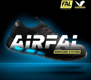 Airfal combina diseño con materiales de última generación y destaca por su gran flexibilidad que le otorga su sistema de amortiguación directa que reduce el impacto en la pisada. Esta tecnología de fabricación, bautizada con Rebound System, hace que la pisada del usuario no sea sobre la plantilla antiperforación textil, sino sobre un material espumoso. Rebound system consiste en la inversión de la colocación de la plantilla alejándola de la zona de pisada del usuario. Con esto, lo que se logra es salvar la barrera de un espesor de aproximadamente 5 mm de fibras de alta tenacidad que compone una plantilla textil resistente a la perforación. El talón del trabajador, al pisar, entrará en contacto directamente con un material de poliuretano espumado con propiedades ergonómicas.