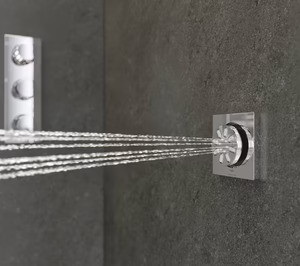 Grohe lanza las nuevas duchas laterales Rainshower Aqua Body spray, que con un diseño minimalista y su innovadora tecnología brindan al usuario los beneficios de los masajes con agua. Su control es intuitivo: una vez se abre el agua, se activan los chorros del cuerpo y se puede elegir fácilmente entre el chorro Pure Rain y el Active Jet, simplemente girándolos. Cuando se cierra el agua, los chorros se "esconden" y se integran completamente para que haya el máximo espacio en la ducha.