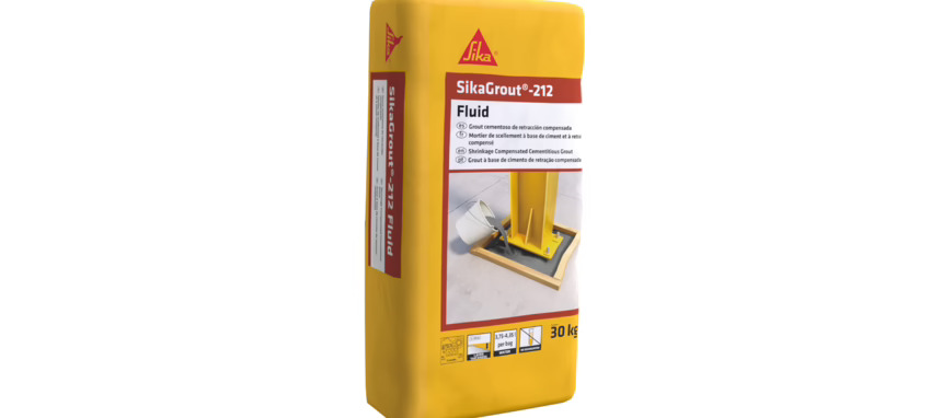 De alto rendimiento, esta solución destaca por ser de retracción compensada y adecuada para aplicarse en equipamiento pesado y bases de máquinas, rellenos de huecos, cavidades, desniveles y recovecos, y anclajes de elementos y postes metálicos y de hormigón, así como para apoyos de puentes y grúas. Asimismo, dado el impulso de la construcción industrializada, SikaGrout-212 Fluid está pensado para su empleo en juntas de apoyo en perfiles de hormigón y pilares prefabricados.