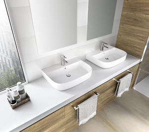 Por su parte, Mid es un lavabo sobre-encimera (también disponible como lavamanos, para instalar a pared) en cuyo diseño destacan especialmente la elegante curvatura de sus líneas y unas paredes delgadas que, además de dar una personalidad única al modelo, ahondan en su funcionalidad. Gracias a la variedad de formatos en que se presenta (65 x 45 cm; 60 x 45 cm; 55 x 45 cm; y 45 x 45 cm), es un lavabo idóneo incluso para los baños más exigentes en cuanto a espacio.