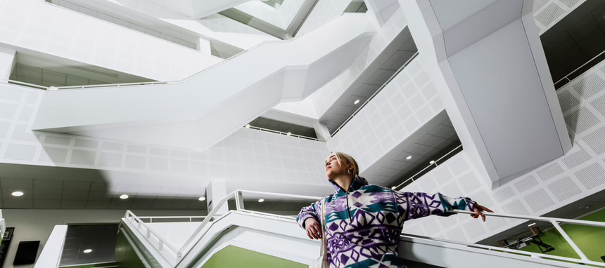 La utilización de Ecophon Clipso responde, por tanto, a un criterio estético, en concreto, al objetivo de sacar a la luz la geometría de las escaleras, y, por otro, a la necesidad de suavizar las reflexiones sonoras en este atrio de varias plantas, para, así, garantizar el confort de los alumnos y profesores.