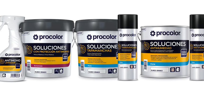 Procolor, marca de soluciones para pintores profesionales y perteneciente a AkzoNobel, ha lanzado su nueva gama Soluciones, una línea de productos de alta eficacia y fácil aplicación diseñada para resolver los problemas más comunes en paredes y techos. Con esta gama, los profesionales de la pintura podrán enfrentarse con confianza a manchas difíciles, humedad persistente y la aparición de moho, garantizando resultados duraderos y de calidad.