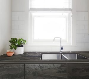 Cosentino incorpora materiales procedentes de las mermas del propio proceso productivo en la creación de diversas tonalidades de Dekton®. Trilium y Radium, dos de los colores de la serie Dekton® Industrial, son un claro ejemplo de ello ya que se producen con hasta un 80% de material reciclado. Industrial nace para convertirse en la serie de colores más desenfadada y rompedora de Dekton gracias a su carácter urbano. Dekton Industrial regala una superficie con una apariencia ruda, fuerte, atrevida, con carácter, y donde el orden y el desorden se complementan a la perfección. Recupera los tonos metalizados, oxidados y cementados que ya fueran una moda en el pasado, con la mejora proporcioanada por la innovación de Cosentino.