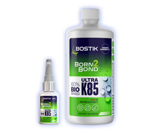 Es un adhesivo biobased o de base biológica, ya que un 60% de su formulación es de origen biológico. Born2Bond Ultra K85 cumple con la norma ISO 10993-5, y puede ser empleado para la unión de productos para exteriores (expuestos a lluvia, calor y frío), MRO (Mantenimiento, Reparación y Operación), ensamblaje general, fabricación y prototipado de juguetes, dispositivos médicos, la industriaautomotriz y electrónica de consumo.