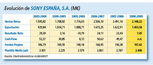 La filial española del grupo nipón Sony concluyó el pasado ejercicio fiscal (marzo-2009) con una bajada en sus ventas del 13,6% hasta los 2.148,22 M€ (2.491,10 M el año anterior) y un notable descenso en sus beneficios (de los 23,4 M de 2007-2008 a los 7,05 M del pasado año). Las cifras en condiciones normales podrían ser para echarse a temblar. Sin embargo, en un año en el que la crisis de consumo es noticia cada día y, lo que es más importante, tras lograr "poner a salvo" una factoría como la de Viladecavalls, desde Sony España la perspectiva varía un poco. Para empezar, y según la lectura de Pedro Navarrete, director general de la compañía, Sony España habría retrocedido en ventas algo menos que la media del sector, que habría sido de un 15%. Y eso pese a venderse un 20% más de televisores planos que el año anterior. Y es que sería esta la gran tragedia del sector. Las constantes caída de precios (de un 25% según GfK) estarían presionando como nunca en unos márgenes empresariales que a cada año que pasa se iban estrechando más. La lectura positiva vendría de conseguir beneficios en un entorno tan adverso en el que otros competidores se habrían visto más castigados que Sony.