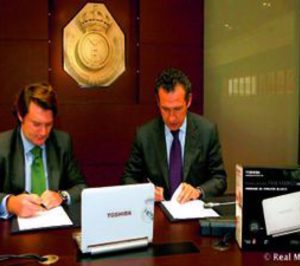 Toshiba y el Real Madrid han firmado un acuerdo de colaboración para lanzar al mercado el primer ordenador oficial del club, el portátil 'NB200 Edición Real Madrid'. Este acuerdo fue ratificado el 10 de diciembre por Jorge Valdano, director general del Real Madrid, y Alberto Ruano, director general de Toshiba.