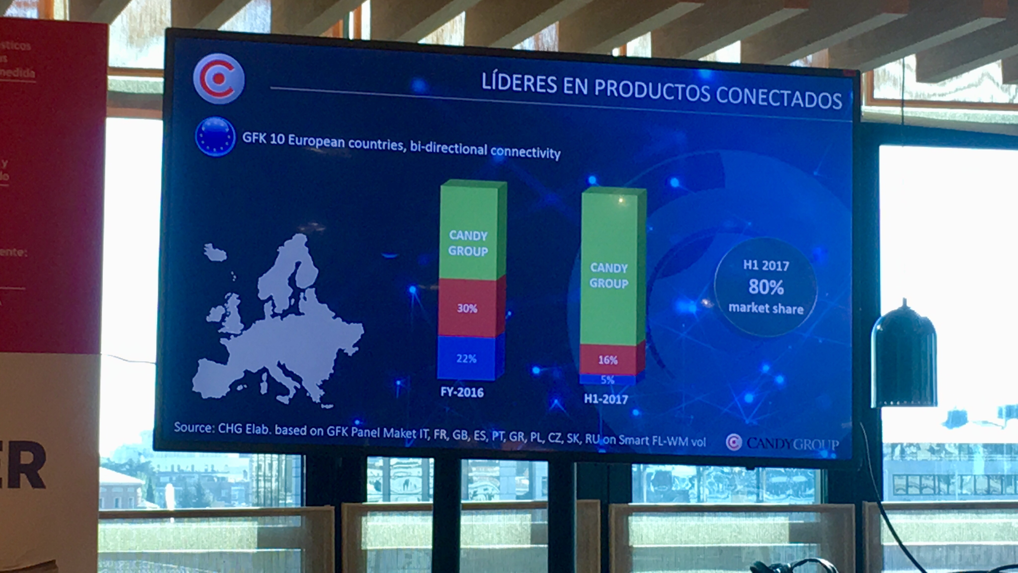 "Tenemos una media en Europa de 2.000 personas al día que se registran con nuestros electrodomésticos conectados y a través de estos aparatos recibimos información que plasmamos en dos vertientes. Por una lado nos permite mejorar el producto, revisar fallos o cualquier problema que pueda aparecer a lo largo de la vida del aparato. Pero esa información también nos permite aprender de la utilización que hacen los usuarios de sus electrodomésticos" señala Mattiello. "Una de las cosas que más utiliza la gente de una lavadora o un lavavajillas es el circuito de lavado corto. La gente, cada vez más, tiene prisa y no tiene tiempo para programas de tres horas de lavado. Lo que quiere son circuitos más cortos. Y el circuito de lavado más corto del mercado lo tenemos nosotros:cargas completas a 39 minutos o 29 minutos, de 9 y 8 kg, la única marca que lo tiene en el mercado es ‘Hoover’ y con clase de lavado A. Y todo esto es posible porque, a nivel de conectividad en Europa somos líderes. Si en 2016 hemos tenido un 48% de cuota de mercado en Europa en producto conectado en 2017 hemos llegado ya al 80%. Y los dos competidorers más inmediatos, que son líderes tecnológicos también en otros sectores, no han conseguido acercarse a nuestra posición (con un un 16 y 6%)".