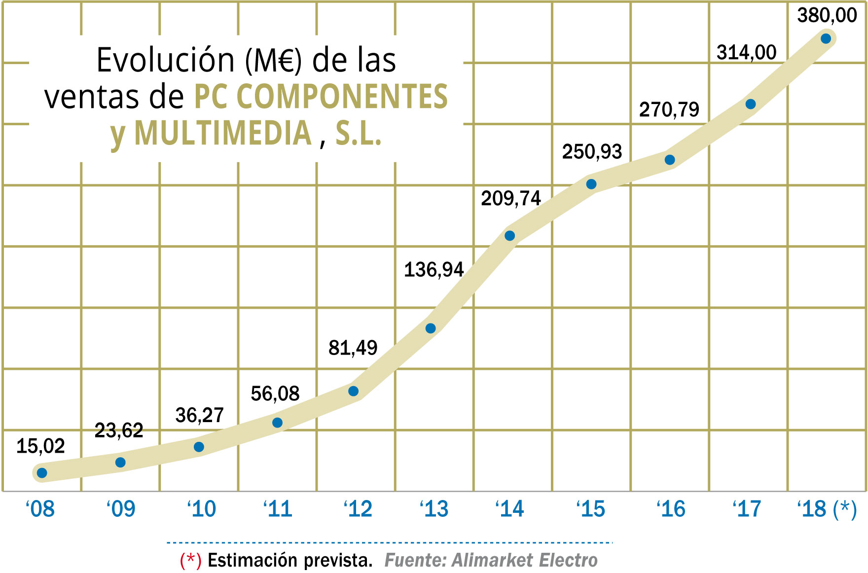 Evolución (M€) de las ventas de PC COMPONENTES y MULTIMEDIA , S.L.